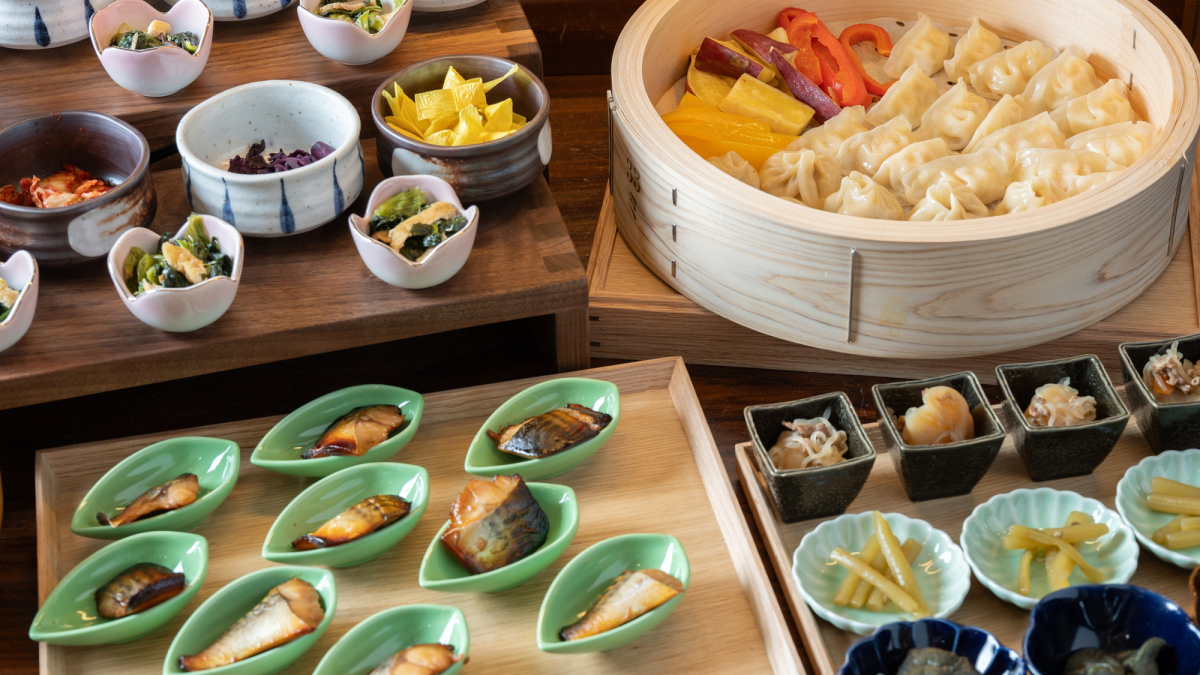 地元の市場や農園から取り寄せた京野菜などをたっぷり味わうサラダバーや、素材本来の栄養や甘みを引き出す温野菜など、隅々まで野菜にこだわったビュッフェをご用意しています。