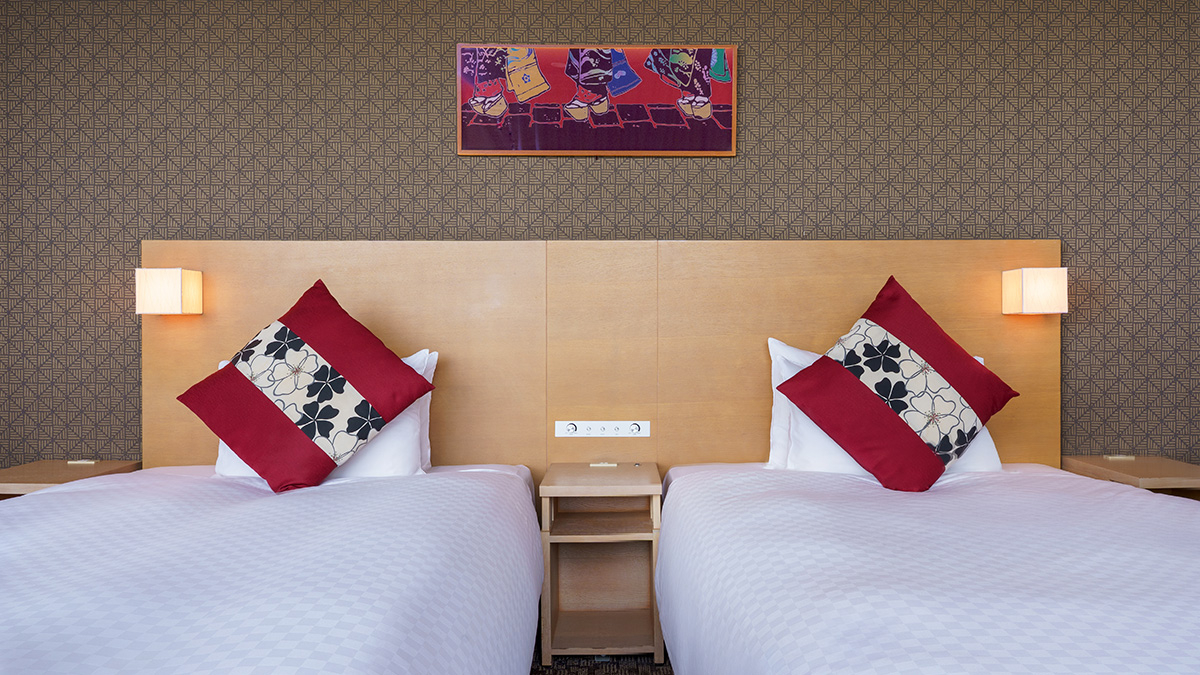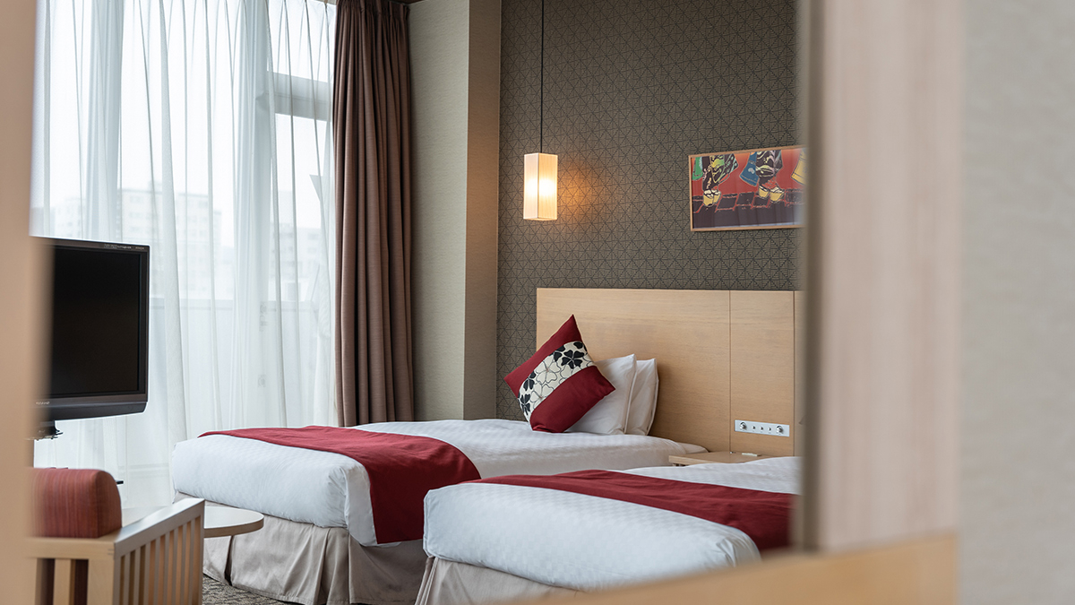洋室を基調に機能性を重視しつつ、雪見障子や和風照明などの「和」が織り込まれた客室は、和・洋の美が綺麗に溶け合い、幅広い層のお客様に好評です。